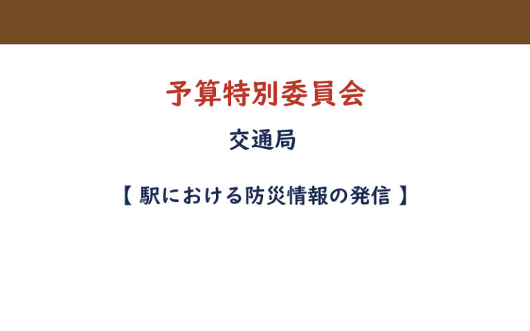 会議日:令和7年2月21日( 予算特別委員会( 交通局 ) ) 駅における防災情報の発信 【交通局】 ▼次の質問です、合わせてお読みください▼