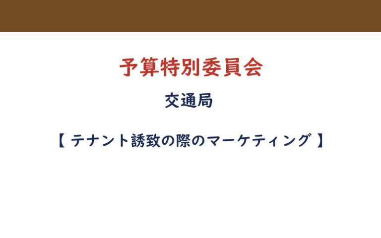 会議日:令和7年2月21日( 予算特別委員会( 交通局 ) ) テナント誘致の際のマーケティング 【交通局】 ▼次の質問です、合わせてお読みください▼