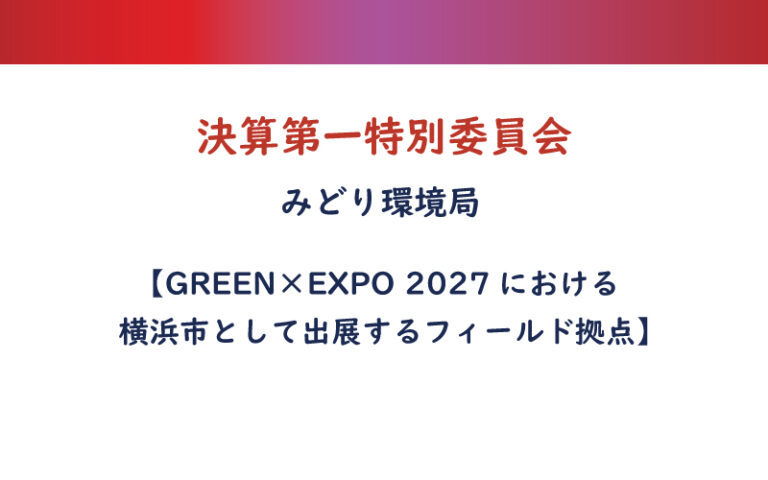② 令和7年度決算第一特別委員会【GREEN×EXPO 2027における横浜市として出展するフィールド拠点】答弁