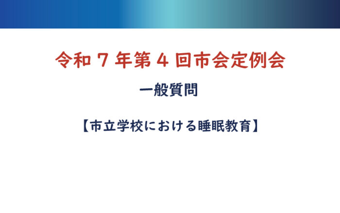 睡眠教育によって子どもたちの睡眠への意識が高まり、日頃から十分な睡眠を取るようになり、子どもたちの心身の成長につなげていけるよう、横浜市が子どもたちの睡眠を課題としてしっかりと受け止め、睡眠教育を近隣の自治体に先行して実現していただくことを強く求め、次の質問へ移ります。