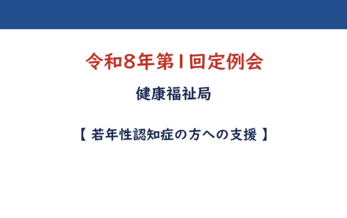 会議日:令和8年3月2日( 予算特別委員会( 健康福祉局 ) )若年性認知症の方への支援 しらい亮次次に、若年性認知症の方への支援について伺います。若年性認知症は現役世代である40から50代で発症することが多く、そのため、発症した場合には本人やご家族にとって心理的衝撃が大きいことはもちろん、就労の継続などによる収入の確保、子育てなど、さまざまな対応が必要になります。とり
